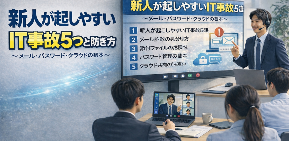 「知らなかった」では済まないITトラブルを防ぐ基本を学びます。新人教育にそのまま使える内容です