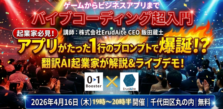 19:00~19:45 登壇「起業家必見「バイブコーディング超入門」MVPが最速30分で爆誕!?」