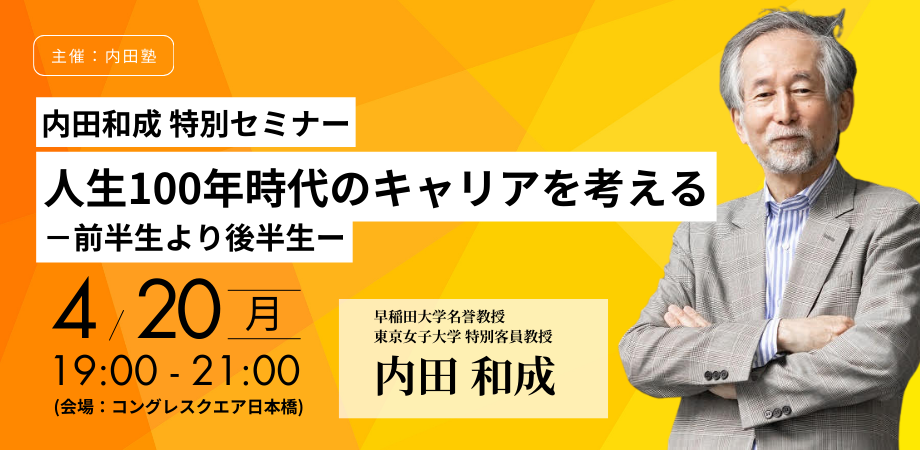 イベント詳細 内田和成 特別セミナー 主催:内田塾【人生100年時代のキャリアを考える -前半生より後半生ー】