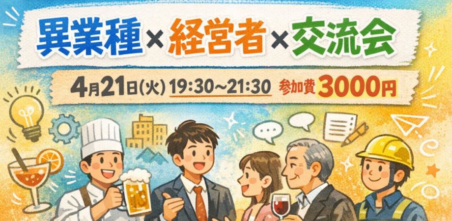名刺交換や事業相談を通じて、新しいつながりや協業の可能性を見つけられる交流会です。時間:19:30~21:30※20分前に受付開始いたします。※途中参加・退席も可能です。