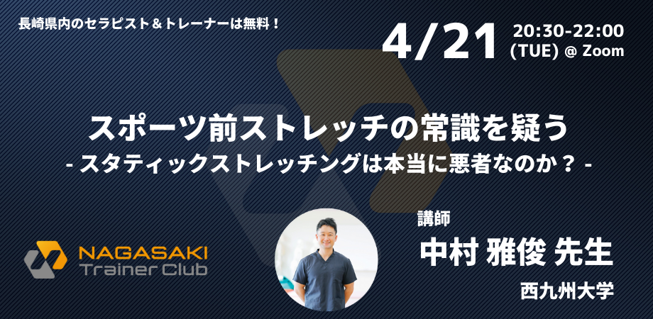 イベント詳細 【テーマ】「スポーツ前ストレッチの常識を疑う- スタティックストレッチングは本当に悪者なのか? -」