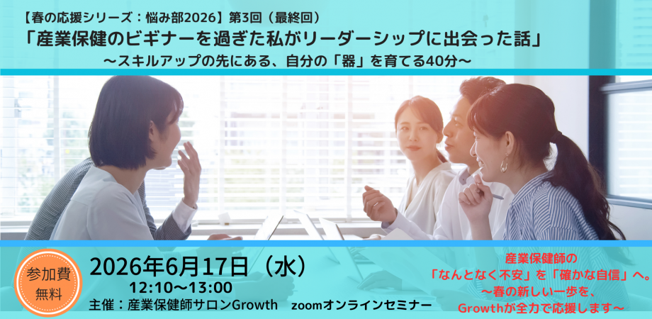 【春の応援シリーズ:悩み部2026】 第3回(最終回) :「産業保健のビギナーを過ぎた私がリーダーシップに出会った話」 〜スキルアップの先にある、自分の「器」を育てる40分〜&nb... powered by Peatix : More than a ticket.