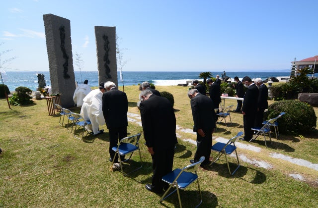 会場となる花瀬望比公園は、東シナ海の海岸沿いに面し、開聞岳噴火の溶岩でできた景勝の地にある公園です。先の第二次世界大戦の戦没者の霊の鎮まる霊地であり、次の世代に向けて世界各国の平和を発信する拠点となっています。毎年3月27日には、フィリピン