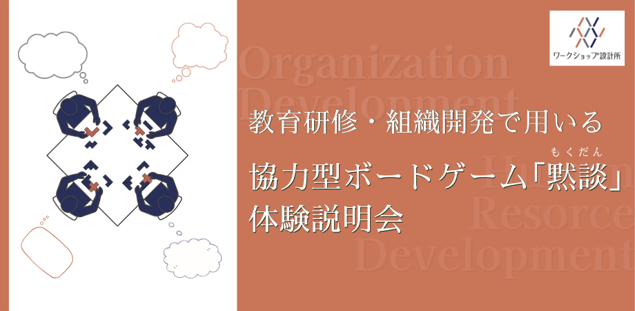 イベント詳細 ~教育研修・組織開発で用いる協力型ボードゲーム「黙談(もくだん)」体験説明会~byワークショップ設計所(https://ws-plan.pro)