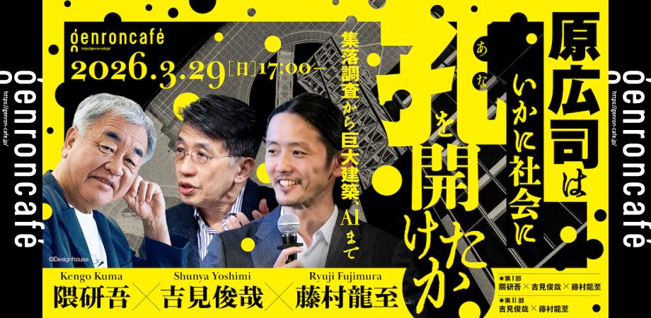 昨年1月に亡くなった建築家、原広司さんの追悼イベントを開催します。ご登壇いただくのは、東大の原研究室で学んだ隈研吾さんと吉見俊哉さん、建築家を志した頃、「梅田スカイビル」が表紙の建築雑誌を初めて購入したという藤村龍至さんです。