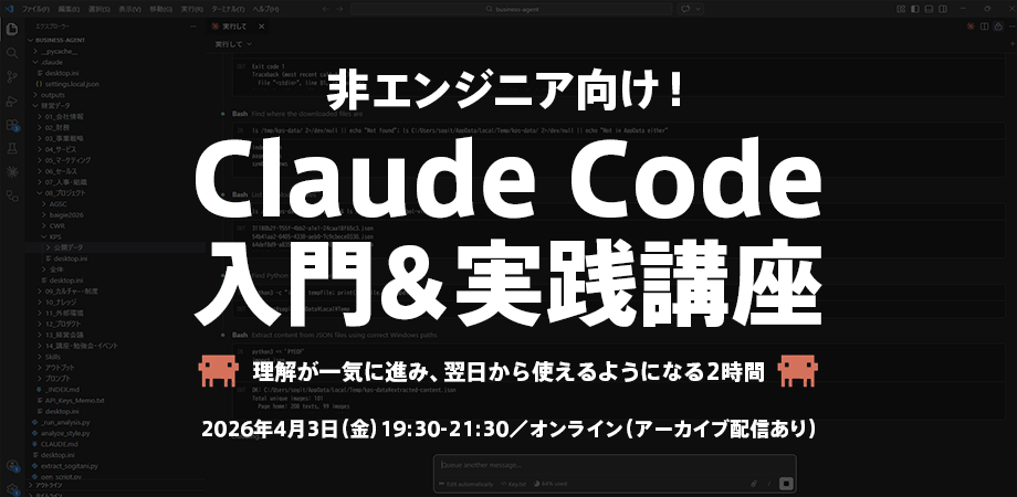 非エンジニアであり、ビジネスの実務家であり、Claude Codeの実践者であり、という立場から、最初の一歩が踏み出せない人たちが「なるほど!」と理解し、一気に開眼するようなウェビナーを開催します。