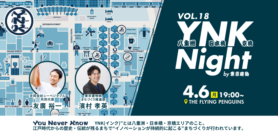 イベント詳細 /偶発的な出会いを育むBAR「THE FLYING PENGUINS」と、YNKエリアのまちづくりを進める「東京建物」による定期イベント『YNK Night』開催です!\