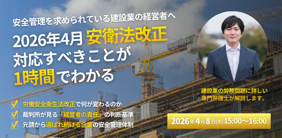 イベント詳細 『無事故=安全』の時代は終わった!建設業のための経営リスク回避セミナー― 2026年の法改正に対応できていますか? ―