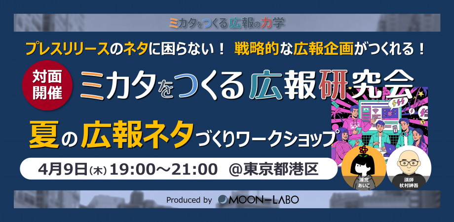 イベント詳細 「記事露出につながるプレスリリースを書きたい」、「メディアに取り上げられる広報ネタをつくりたい」という広報担当の皆さまへ。今回は夏から秋にかけての記事化を目指して、記事になりやすい広報ネタをつくるワークショップを開催します。このワークショップでは、世の中のトレンドや社会課題といった「世の中ゴト」の視点から、記事になりやすい広報企画をご自身で、他の人の意見も参考にしながら立てていきます。ワークについては、講師がアドバイスやサポートをしますので、お一人でのご参加や初心者の方もご安心ください。【開催日時】 2026年 4月 9日(木) 19:00 ~ 21:00【開催場所】 株式会社バリューデザイン青山オフィス ラウンジ(ペイクラウドホールディングス内) ※京橋の本社ではなく青山オフィスの方ですのでお間違いなく! 東京都港区南青山2丁目24番15号 青山タワービル 1F 東京メトロ 銀座線 「外苑前」駅 1b出口より徒歩1分 〈行き方案内〉 https://www.valuedesign.jp/news/recruit/office-aoyama 【参加費】 無料
