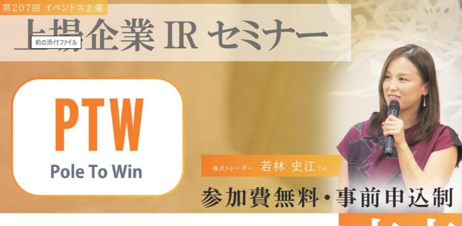 ポールトゥウィンホールディングス のご講演のもようはYouTube「投資WEB」で同時中継します。