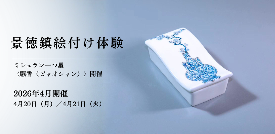 中国・景徳鎮の絵付け文化に触れる、少人数制のワークショップ。本レッスンでは、中国より来日する専門講師を迎え、ミシュラン一つ星 四川料理レストラン〈飄香〉の静かな空間を会場に実施します。