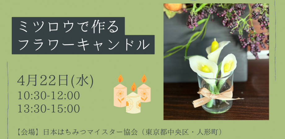 【どなたでもご参加いただけます】 ミツバチが作り出す天然のロウ成分「ミツロウ」を使って、季節を問わずインテリアとして人気の花「カラー」を作成していただきます。精製ミツロウを使用しま... powered by Peatix : More than a ticket.