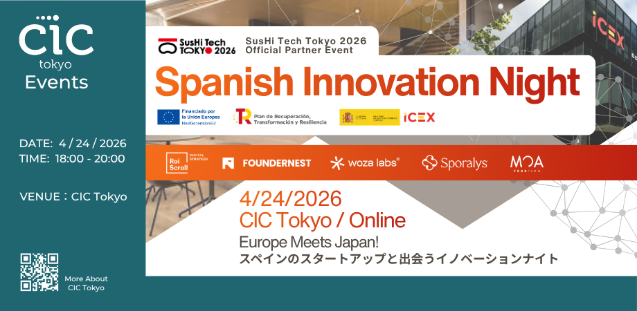 SusHi Tech Tokyo 2026にあわせて来日するスペインの企業・スタートアップ・投資家がCIC Tokyoに集結。欧州の最前線の技術、ビジネス、投資動向を体感しながら、日本企業や投資家との新たな国際連携の可能性を探ります。