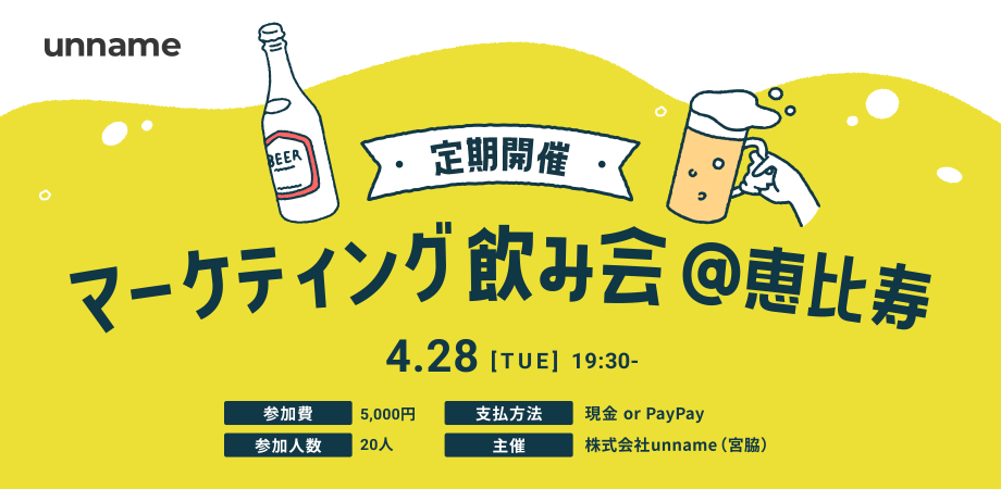 私は大人数の立食形式や、名刺交換から始まる交流会が苦手なのですが、そういう方って結構多いんじゃないか?と思っています。ということでマーケティング関係者と飲んでまず仲良くなる交流会を定期開催することにしました!