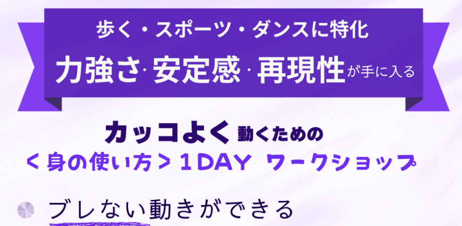 ダンスに限らず、スポーツや歩き方、姿勢も一段と【格上げ】される内容になりますので、