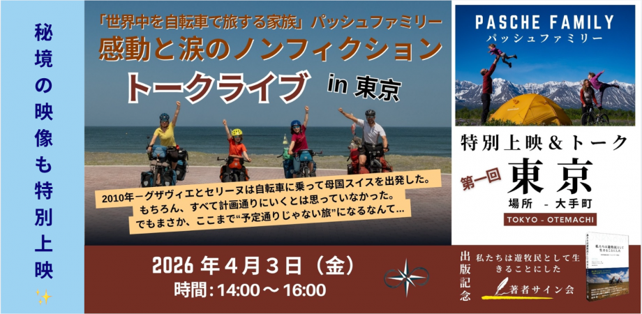 今回は、日本語書籍『私たちは遊牧民として生きることにした』(ぞうさん出版)の出版を記念して開催する特別イベントです。さらに、まもなく日本を発つパッシュファミリーに会える、最後の東京イベント となります。