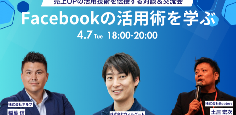 イベント詳細 皆さん、Facebookの利用だけではなく、活用し売上は上がっていますか?コメントしてくれた方へ自動返信、ストーリーでリアクションしてくれた方々に自動メッセージ送信など出来る様になったのはご存知ですか?そもそもFacebookならではのアルゴリズムの上げ方は知ってられますか?この度、令和の虎にも虎として出演されている『iステップ』や『XTEP』の生みの親株式会社ネルプ代表“稲葉信”とソーシャルセリングの生みの親でもありFacebookからの売上だけで数十億の経済を生み出すウィルゲート共同創業者“吉岡諒”の対談形式を用意し、ファシリテートはFacebook1つで月間20本約800人の決裁者交流会を運営するRooters土居が行います。講演後はフリータイムを設け、参加された方々も含めた交流会も行いますので、参加者同士の懇親も可能、早速Facebookの活用をして頂きたいです。