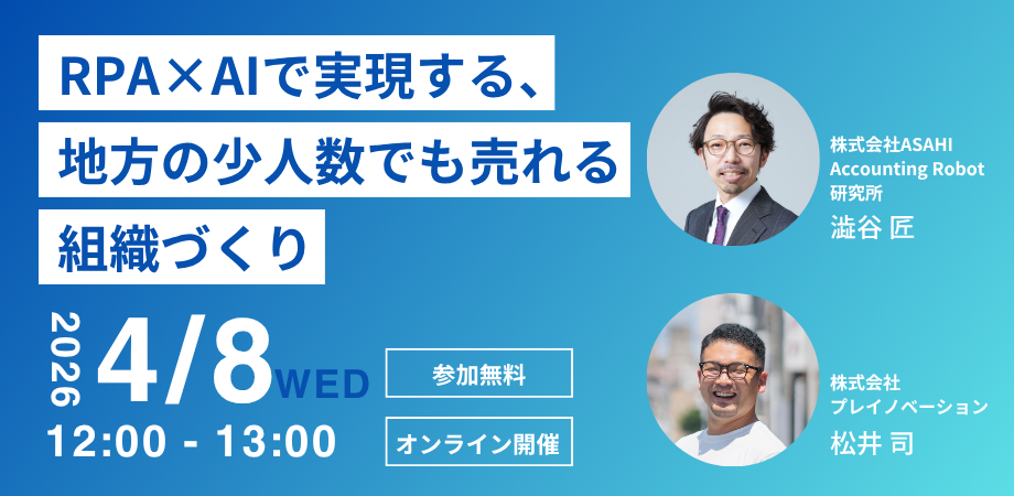 イベント詳細 【セミナータイトル】RPA×AIで実現する、地方の少人数でも売れる組織づくり~業務自動化×AI営業支援で、東北の中小企業がスケールする仕組みをつくる~