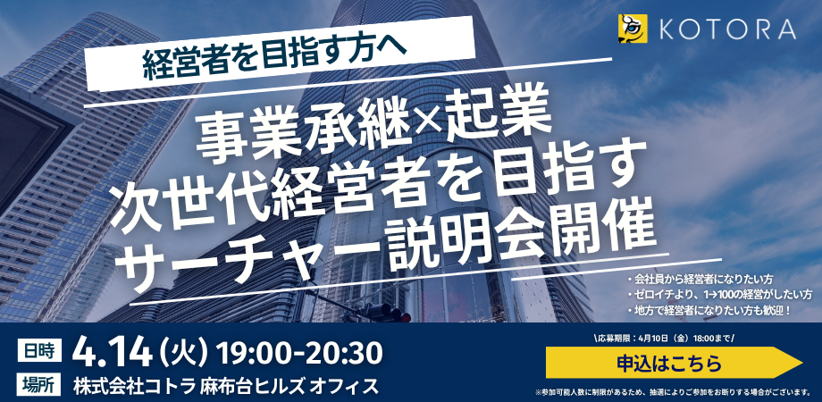 ●イベント概要<日時>2026年4月14日(火)19:00〜20:30 終了<開催場所>コトラ本社オープンスペース東京都港区麻布台1丁目3-1 麻布台ヒルズ森JPタワー11階