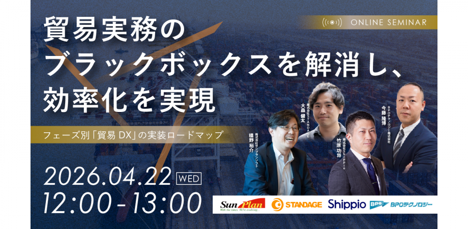 本セミナーでは、貿易DXを牽引する企業が登壇。 「どこから手をつければいいのか?」という問いに対し、デジタルツールによる「可視化」から、ブラックボックスの解消、アウトソーシングによる「リソースの最適化」まで、貴社のフェーズに合わせた最適な貿易実務のアップデート方法を、最新事例を交えて徹底解説いたします。