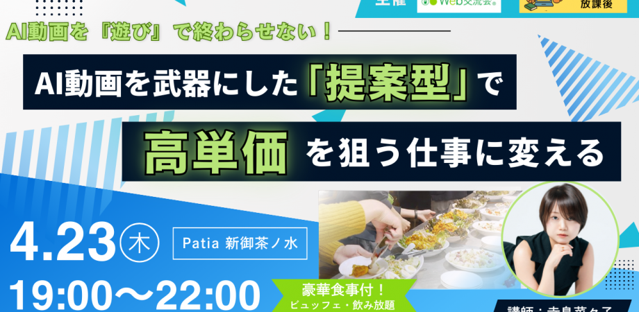 🕒 タイムテーブル19:00〜19:45 勉強会19:45〜22:00 交流会(立食) 📚 前半:勉強会(19:00〜19:45)前半は勉強会パートとして、本セッションでは、AI動画の制作技術そのものではなく、AI動画を使ってどのように顧客の課題を解決し、予算を引き出すかにフォーカスします。