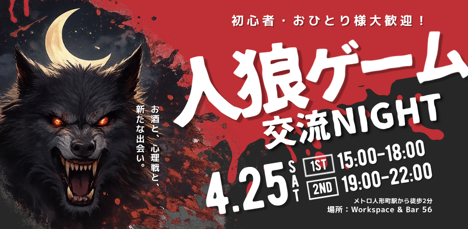 お酒を片手に楽しむ、“大人の人狼ゲーム交流会”を開催します🐺