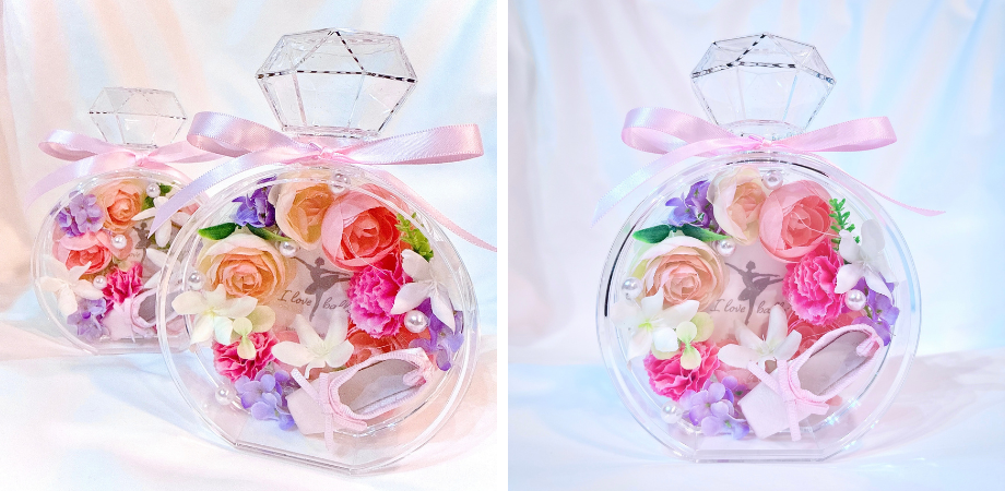 香水瓶型アクリルボックスの中に、色とりどりのアーティフィシャルフラワーやパール、小さなトゥシューズを飾って世界にひとつだけのフラワーボックスを作ります。自分だけの可愛いバレエの世界を素敵なボックスに閉じ込めましょう。お子さまから大人まで楽しめるワークショップです。