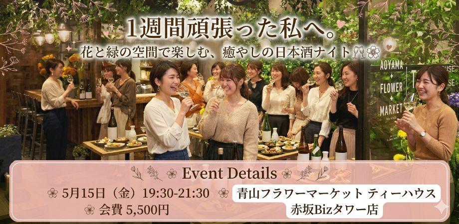 イベント詳細 1週間頑張った私へ。花と緑に包まれるTEA HOUSEで、フルーティーな日本酒に酔いしれる癒やしの夜✨🥂🌸🍶