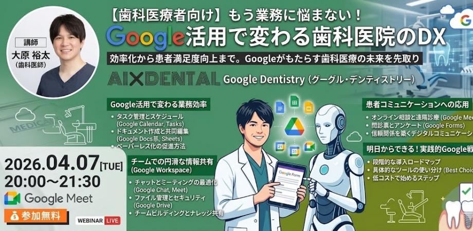 「時間泥棒」を撃退! Google活用で実現する歯科医院の働き方改革と徹底的な業務効率化 「あの資料、どこに保存したっけ?」「最新版のファイルはどれ?」「過去の患者データを探すのに... powered by Peatix : More than a ticket.