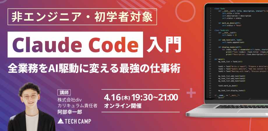 プラットフォーム: peatix / 主催者: テックキャンプ