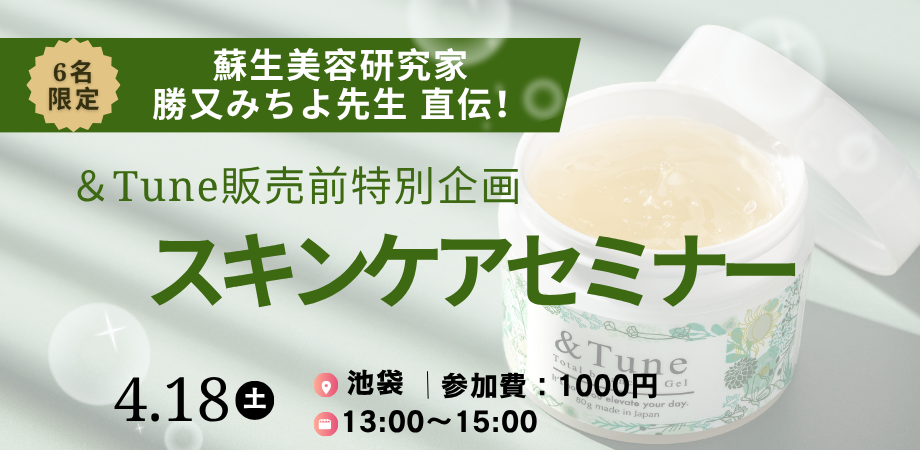 今回は、蘇生美容研究家・勝又みちよ先生をお招きして、&Tuneを使いながら"効果が倍増するプロのケア技術"を直接教えていただく特別な会を開催します🌿