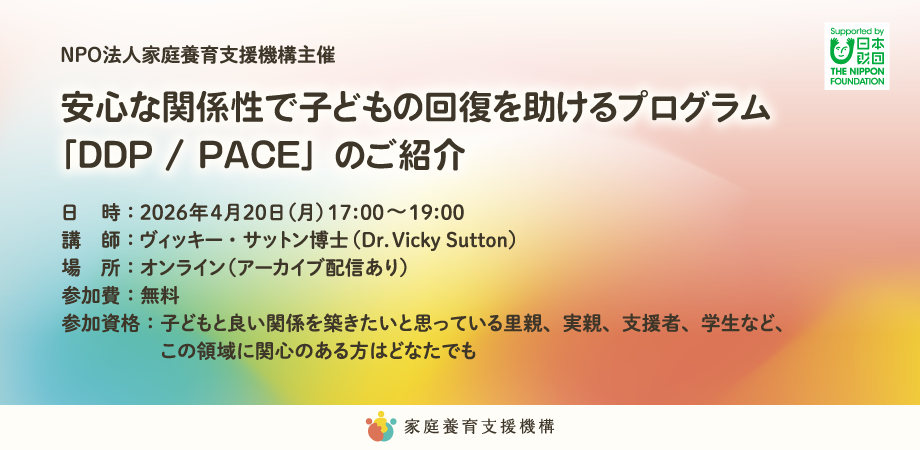 イベント詳細 NPO法人家庭養育支援機構主催 安心な関係性で子どもの回復を助けるプログラム「DDP /PACE」のご紹介