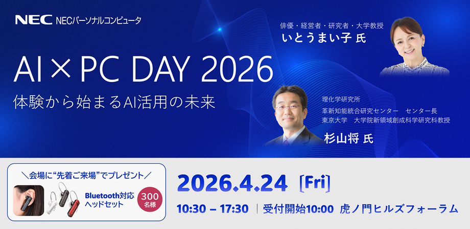【開催概要】『NECパーソナルコンピュータ AI×PC DAY 2026 体験から始まるAI活用の未来』■日時:2026年4...
