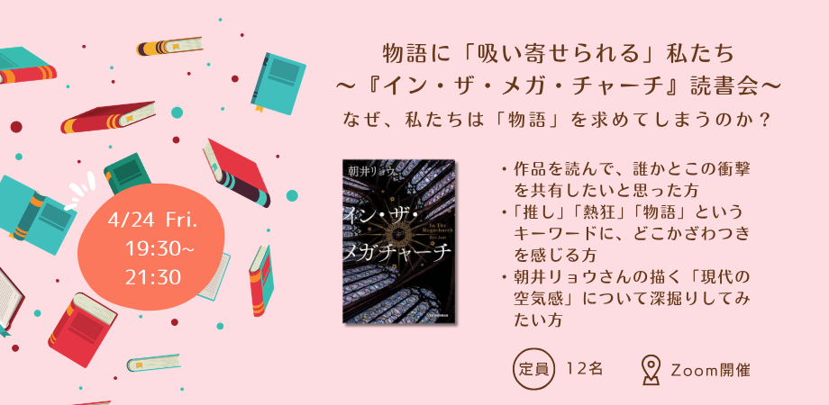 イベント詳細 朝井リョウさんの作品『イン・ザ・メガ・チャーチ』。 読み終えたあと、得体の知れない熱狂と、足元がすくむような怖さを感じた方も多いのではないでしょうか。