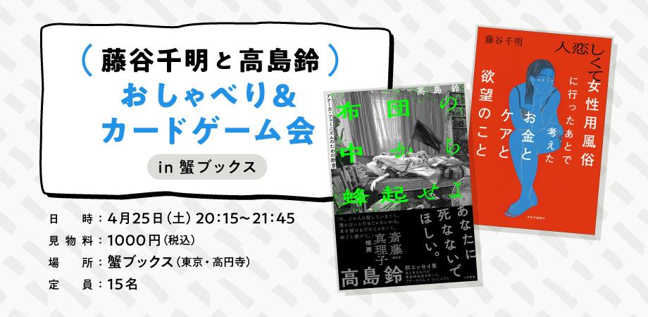 イベント詳細 「藤谷千明と高島鈴 おしゃべり&カードゲーム会in蟹ブックス」