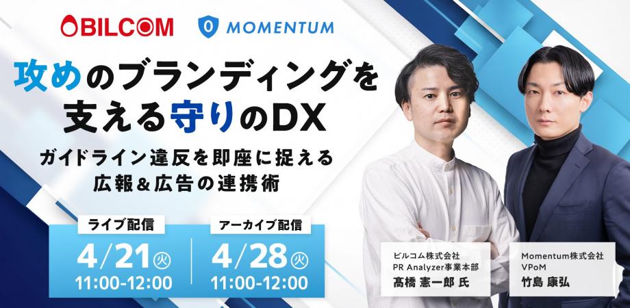 本セミナーでは、国内最大級のアドベリフィケーションベンダーであるMomentum社と、広報DXを推進するビルコムが登壇。