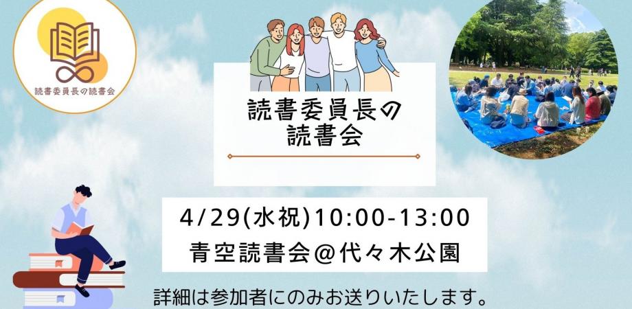 ⏰ スケジュール4/29(水祝)0945 集合1000 読書会&交流タイム1245 終了1300 完全撤収