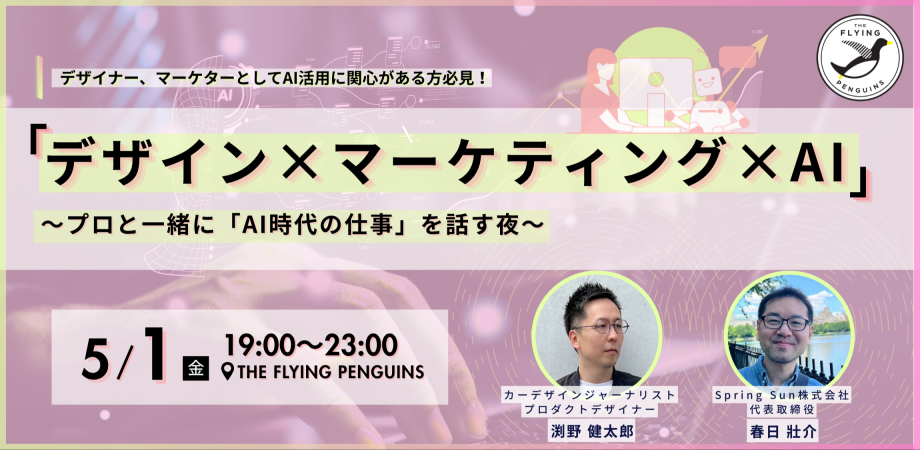 イベント詳細 /偶発的な出会いを育むBAR「THE FLYING PENGUINS」(通称フラペン)マーケターやデザイナーが直面するAIを、ふらっと語り合う夜をひらきます。\