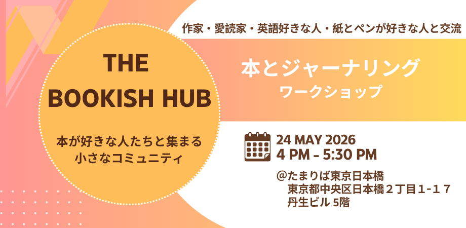 ※トークとワークショップは英語で行いますので、「英語を話す機会を探している」という方は必見です!また、日本語を練習したい海外出身の方も大歓迎。本を通じて、言葉の壁を越えた交流を楽しみましょう。