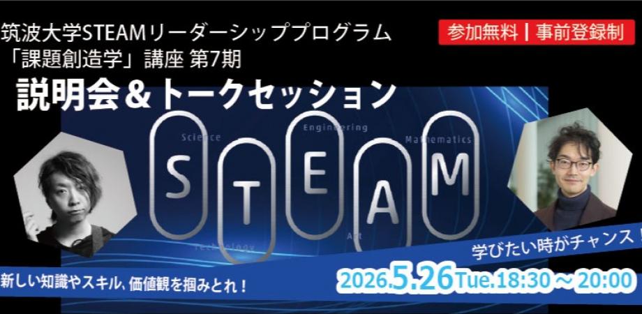 筑波大学STEAMリーダーシッププログラム「課題創造学」講座 第7期説明会&トークセッション 日 程 :2026年5月26日(水) 18:30~20:0... powered by Peatix : More than a ticket.