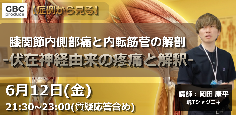 イベント詳細 【セミナー概要】膝関節疾患において、「内側部痛」は臨床で頻繁に遭遇する症状の一つです。また、運動療法を進めるうえで「内側広筋」の機能改善は非常に重要な要素となります。本セミナーでは、その理解をさらに深めるために鍵となる「内転筋管」の解剖に着目します。実際の症例をもとに、・「内側広筋」の機能改善に向けた評価とアプローチ・膝関節「内側部痛」の臨床的解釈・「内転筋管」の解剖学的理解について、わかりやすく解説いたします。日々の臨床に直結する内容となっておりますので、ぜひご参加ください。 続きを読む 隠す