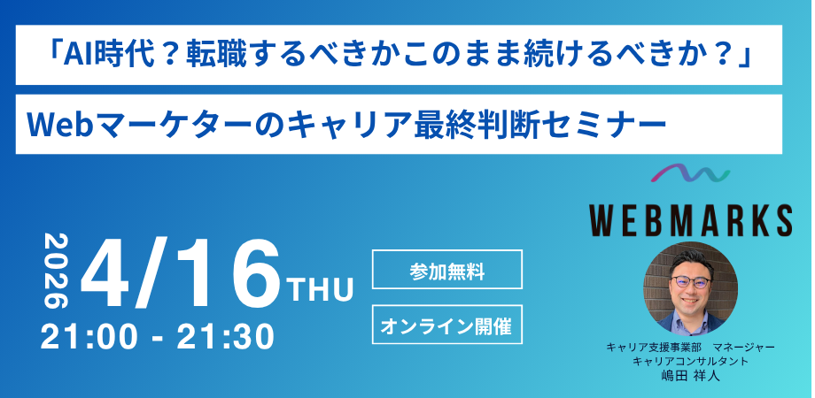 イベント詳細 📣 \転職するべきか、このまま続けるべきか迷っていませんか?/ AI時代のキャリア最終判断セミナー(Webマーケター向け)