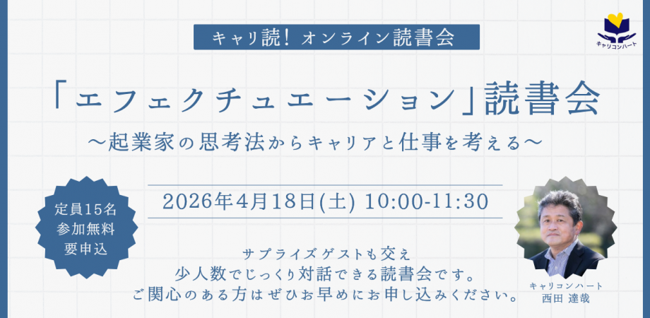 ・エフェクチュエーションに関心のある方・キャリアや働き方について新しい視点を得たい方・人材育成や組織開発に関わっている方・新規事業やプロジェクトに関わっている方・起業や副業など新しいチャレンジに関心がある方・本をきっかけに対話しながら学びたい方