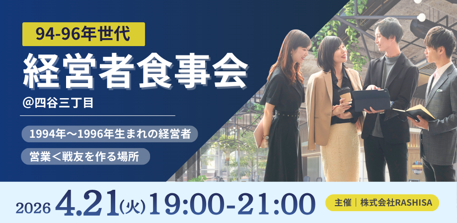 1994年〜1996年生まれの同世代経営者だけが集まる少人数の会食を開催します。
