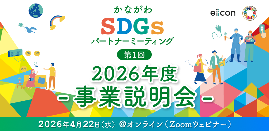 神奈川県内でSDGsの取組等を実施している企業、NPO、団体、大学が登録する、「かながわSDGsパートナー」制度。本制度は、パートナー間の連携を県が後押しすることで、県内のSDGsに関する取組や事業を促進させることを目的としており、現在1,625者(2026年3月31日現在)にパートナー登録をいただいています。今回は、神奈川県内に拠点のある企業・団体、SDGsにご興味のある県内企業・団体を対象に、SDGsの推進、新たなビジネスを創出する場として、「第1回かながわSDGsパートナー ミーティング 事業説明会」をオンライン開催します。これからSDGsに取り組もうと考えている方、SDGsに関する取組を通じて県内企業・団体と交流を深めたい方は、是非お気軽にご参加ください!