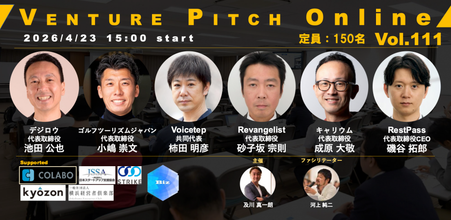 ▼ English Below ▼ 日本のベンチャー経営者が自らの熱いメッセージを伝える場である "VENTURE PITCH ONLINE"これまで7000名を超え... powered by Peatix : More than a ticket.