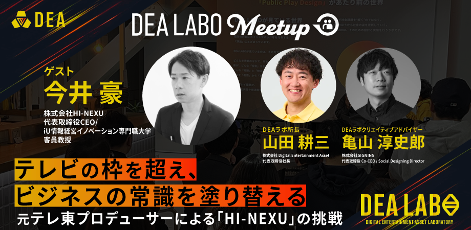 今回のゲストは、DEA山田のテレビ東京時代の先輩であり、現在は株式会社HI-NEXU(ハイネクサス)を率いる今井 豪 氏。