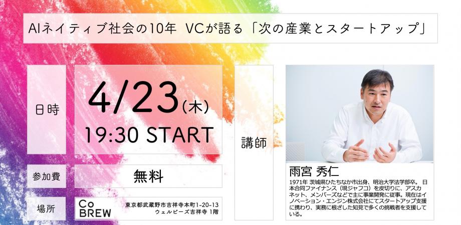 ✏️タイトル AIネイティブ社会の10年 VCが語る「次の産業とスタートアップ」 📖イベント概要 AIネイティブ社会の10年VCが語る「次の産業と起業テーマ... powered by Peatix : More than a ticket.
