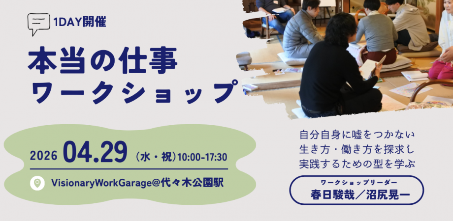 今回のワークショップは1day開催。参加しやすさを重視し、いくつかのワークと対話を通して「本当の仕事」というコンセプトの理解と、実践していくため「型」を学ぶことに焦点を当てた構成です。