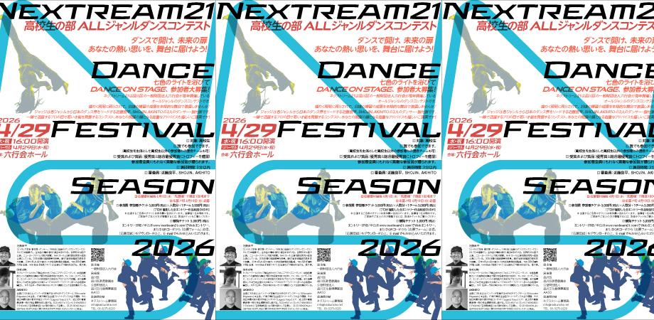 イベント詳細 Nextream21 Dance Festival Season 2026高校生の部 ALLジャンルダンスコンテスト審査員SHOJIN率いるENTERTAIMENT LABOの豪華エクゼビションパフォーマンス付き!!